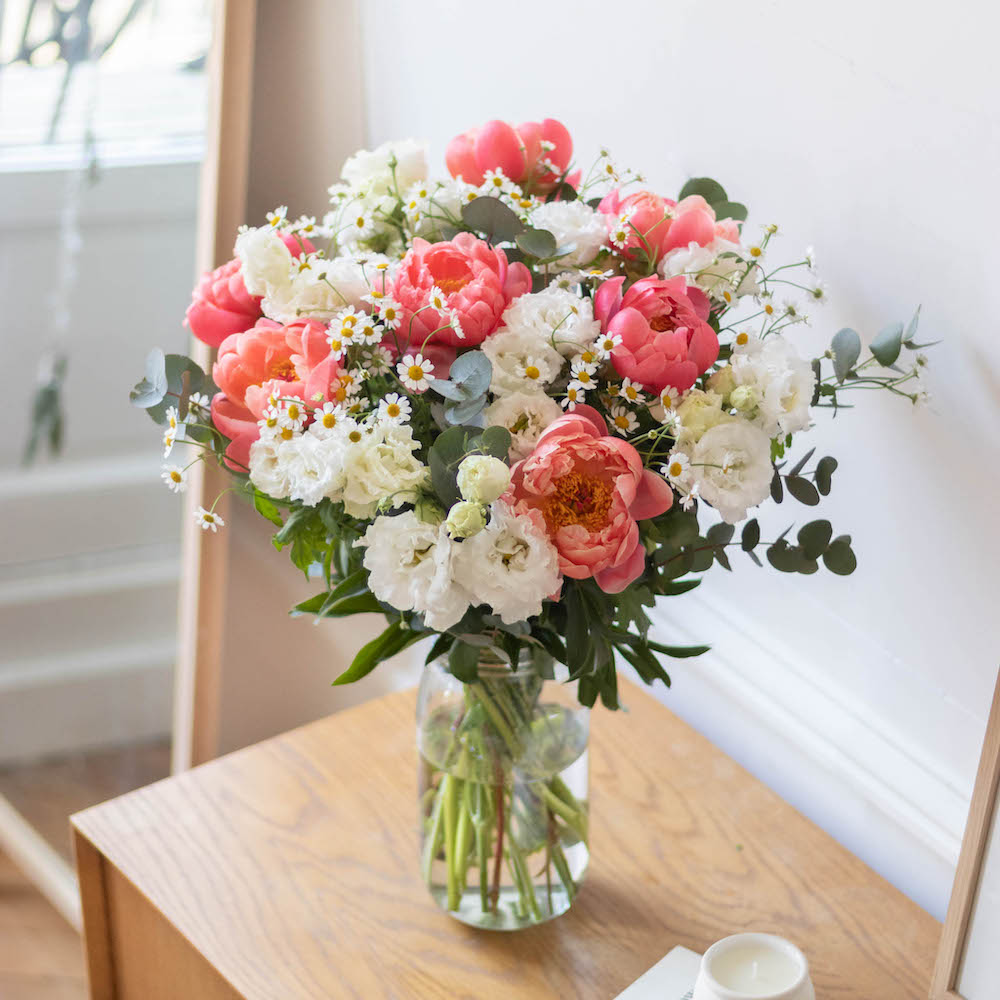 Juni 2019 bekommt ihr mit dem code avonheyden 20 auf alle straeusse seien es pfingstrosen hortensien oder rosen. Hervorragend dazu passen die kleinen blueten der kamille und vom frauenmantel. Die prall gefuellten bluetenkoepfe zaubern einen farbklecks in jeden raum der silbrig gruene eukalyptus ragt keck aus dem arrangement hervor und lockert es auf. Der huebsche wiesenstrauss pfingstrosen mit eukalyptus erstrahlt in leuchtenden farben eine augenweide die lust auf den nahenden sommer macht.
